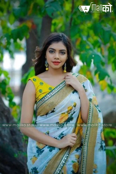 Green Silk Saree with Digital Print